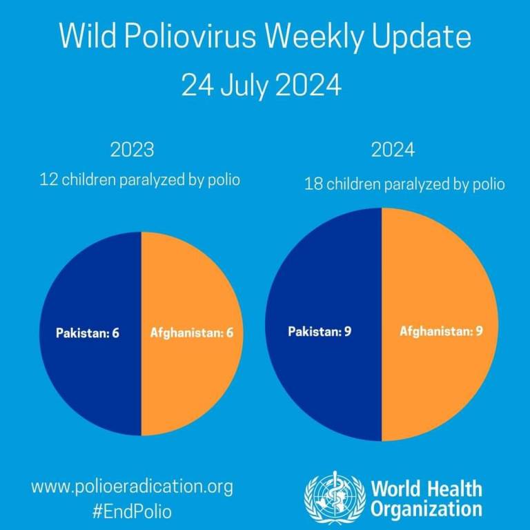 Atualização semanal sobre casos de poliovírus selvagem da OMS: Um novo caso no Paquistão.
