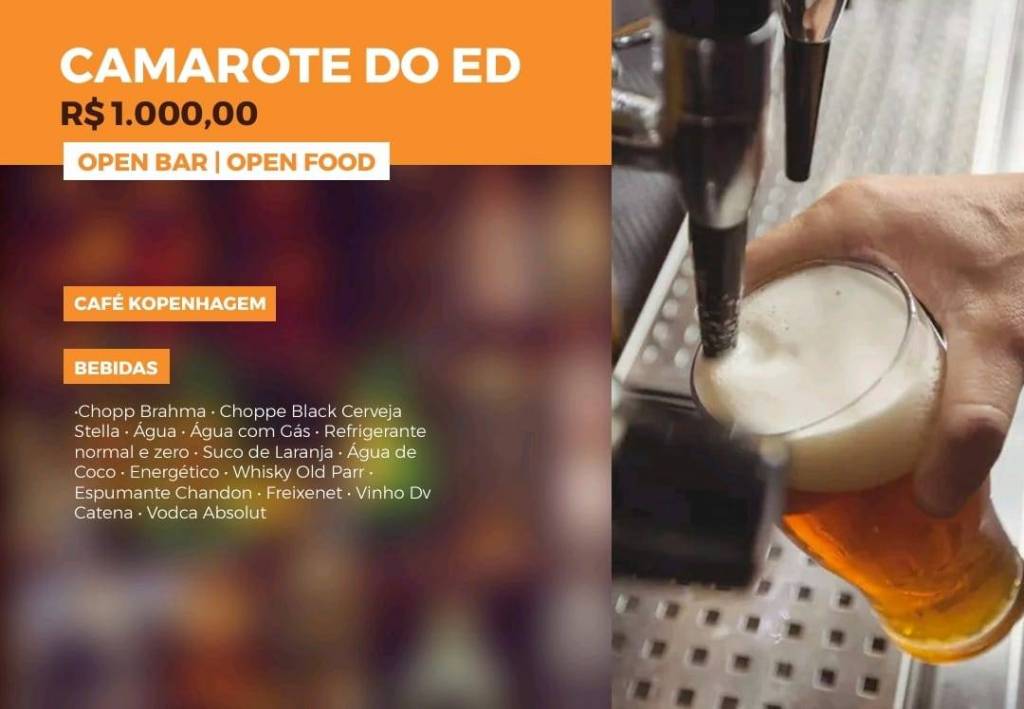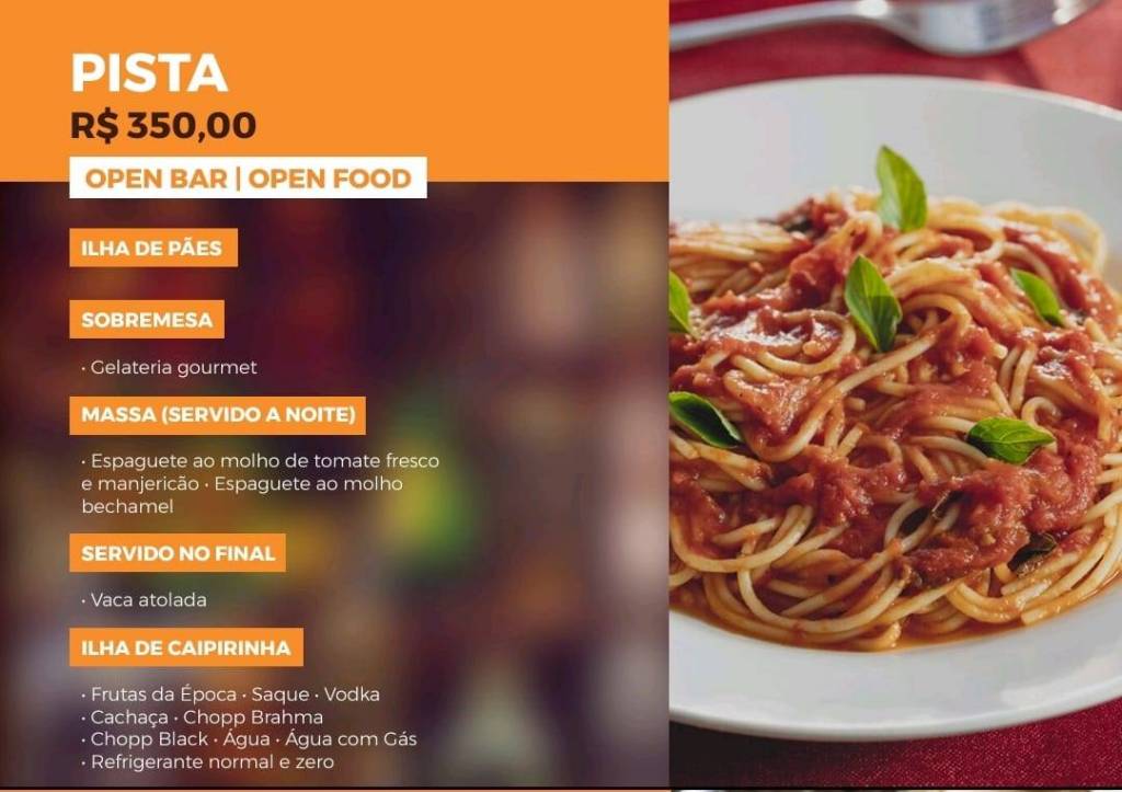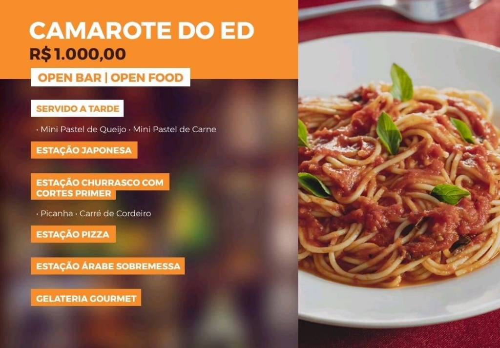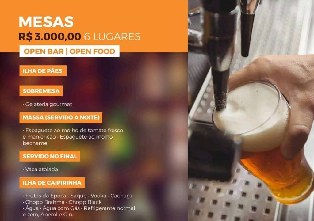 2 palcos, chopp Brahma e um cardápio sensacional. Tem até gelateria!