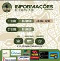 Terminando o card dentro de uma faixa larga verde temos várias logomarcas: da esquerda para a direita: Neo Net Fibra, Club Caramelo, Drogamel, Hexagon Construtora, Móveis Bechara, Rizzo Grill 2, Ovos Tanabi, Eirilar e Acqua Fitness.