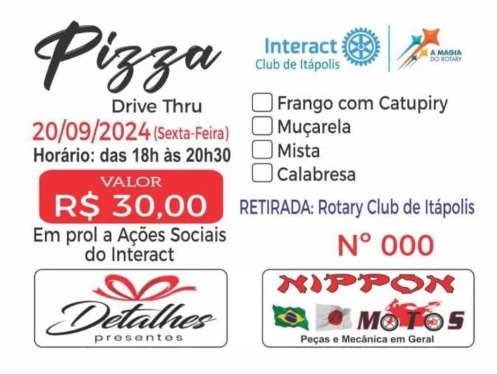 O interact Club de Itápolis está fazendo a venda de pizzas em prol das ações sociais do clube.