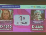 Dentro da arte com o fundo rosa, há a foto de Maria Amábile Betti Fagundes de Queiróz (Embaixadora Assistente) do Distrito 4510 com 200 projetos, uma senhora com cabelos castanhos e, do lado direito, está a foto da Gov. Maria de Lourdes Serpa Dalto (Embaixadora Assistente) do Distrito 4480 também com 200 projetos, com os cabelos claros e curtos. Entre elas há uma arte retangular informando o primeiro lugar.