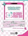 À esquerda da folha, há um balão de fala azul com uma flor azul no canto superior esquerdo. Dentro do balão, em letras brancas, está a pergunta: "Qual é o tema". Abaixo, ainda dentro do balão, está escrito em letras brancas: "ARRASTA PRO LADO".